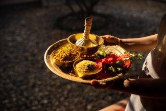 At Annapurna, the heart of the retreat centre and dedicated to the Goddess of Nourishment, meals are predominantly vegetarian and Ayurvedic. Drawing on traditional Ayurvedic principles, each meal is composed to balance the elements “ Doshas”.