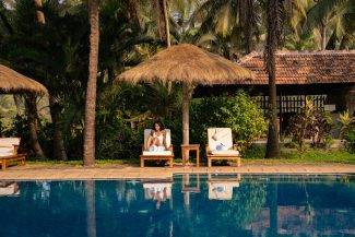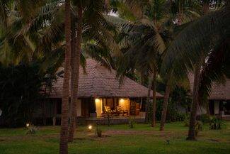 Neeleshwar Hermitage’s accommodation is modelled on traditional fishermen’s huts. Surrounded by lush gardens of hibiscus and frangipani, light and airy palm-roofed cottages blend traditional Keralan architecture with contemporary design, supplied with high quality natural products. Each cottage offers privacy, comfort and individuality with views to the pool gardens, or sea. With teak floors, high ceilings and generous proportions, locally handmade wooden furniture and antique and contemporary objets d’art from Kerala, the ambiance is charming yet provides all the modern comforts. Sleep deeply in large, high quality beds which can be arranged as a double or twins as required. Bathe in the open air in your own outdoor bathroom, sip tea and read a book on your shaded veranda and soak in the scenery.